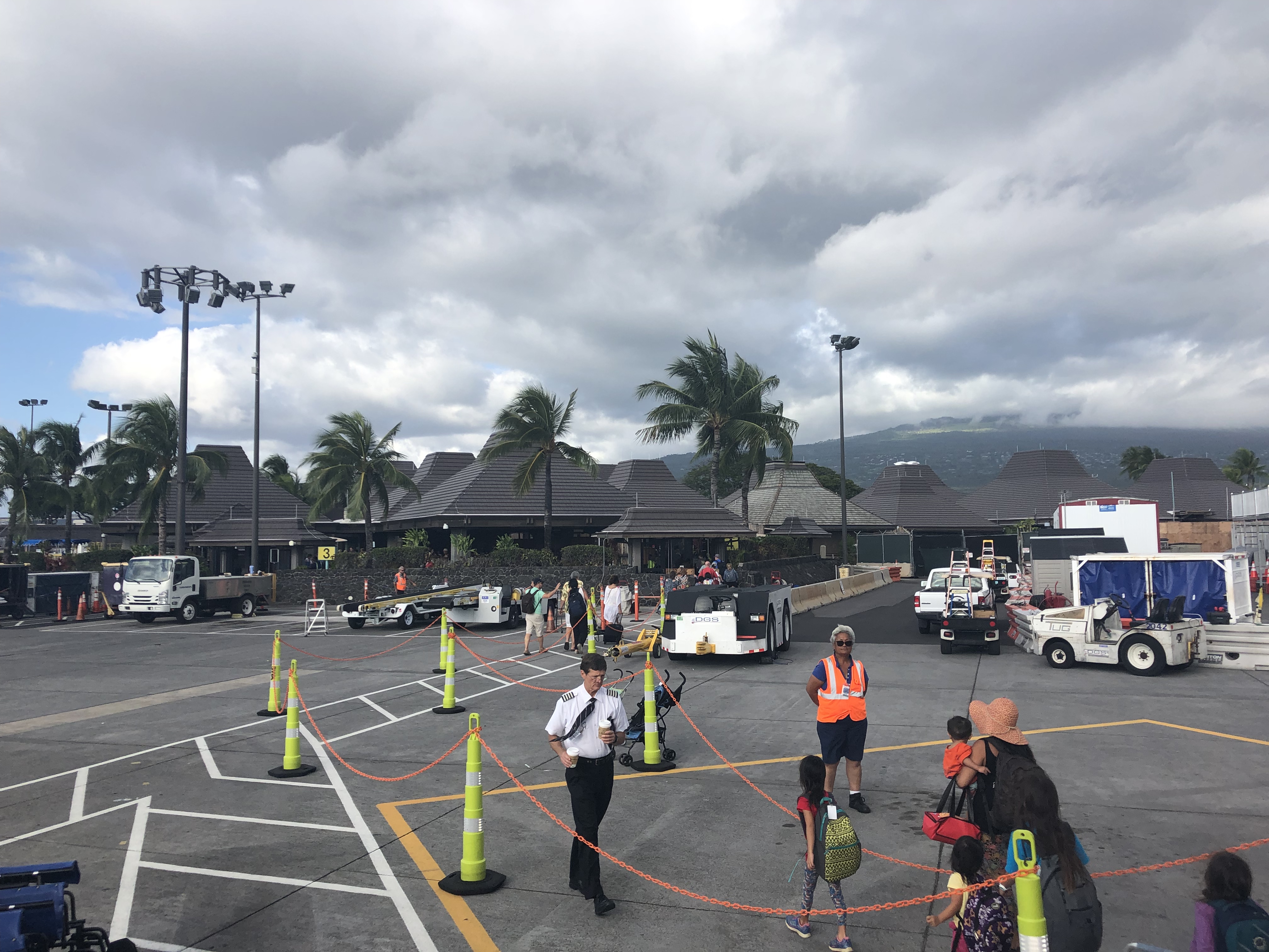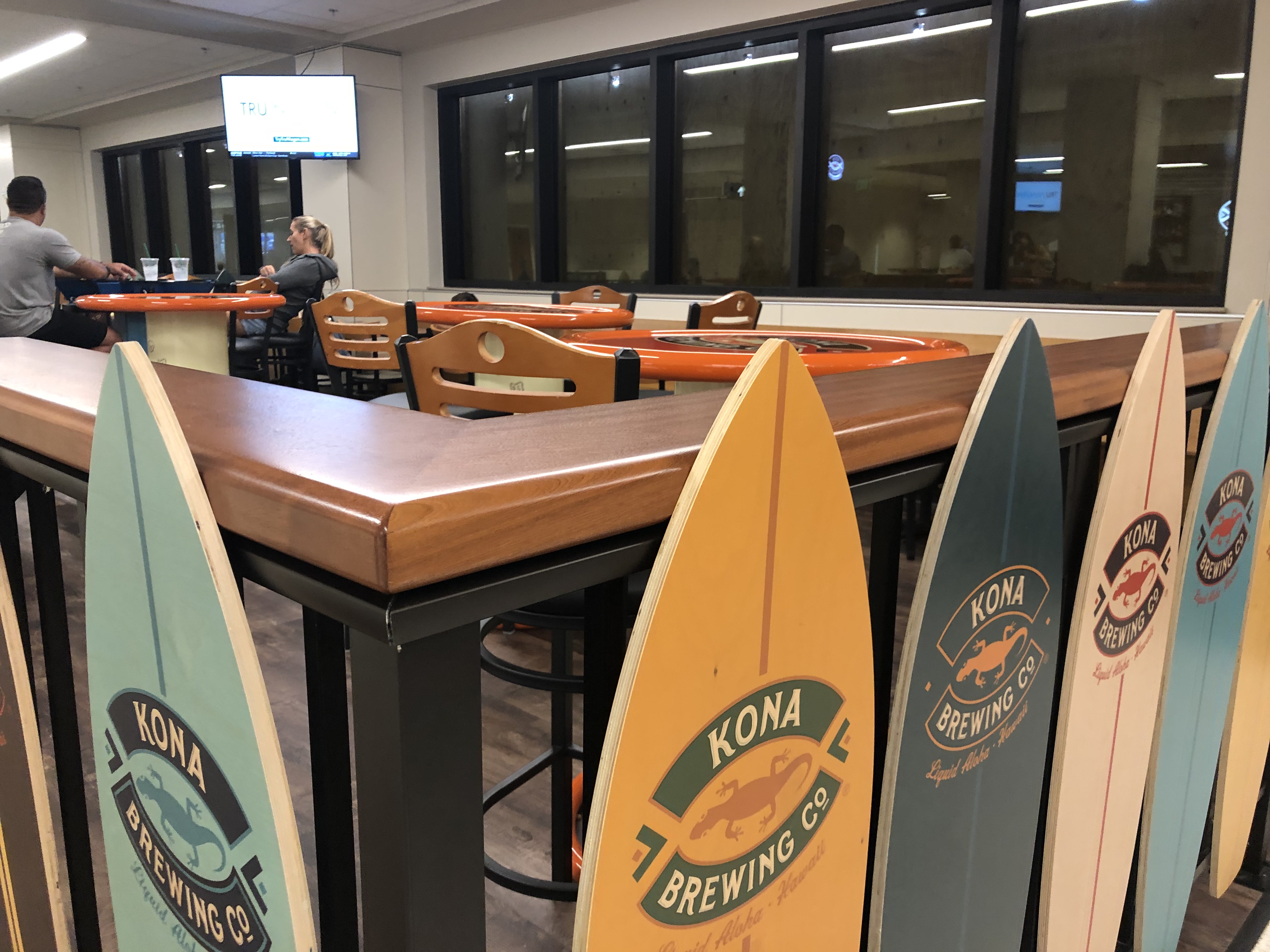 After the flight from Maui (and another Cran-grape juice and pretzel bag served by the all male flight attendant staff), we arrived back in Honolulu to grab the connecting flight. Why you have to fly north to Honorable then back south to Hawaii’s Kona airport is beyond me. Unfortunately, there was a slight delay in our flight departure, so we had about 4 hours to kill and grabbed a snack at these cool looking tables. While sitting there, we watched a channel that was showing the Electricians National Championship games. Yes, this is a thing.