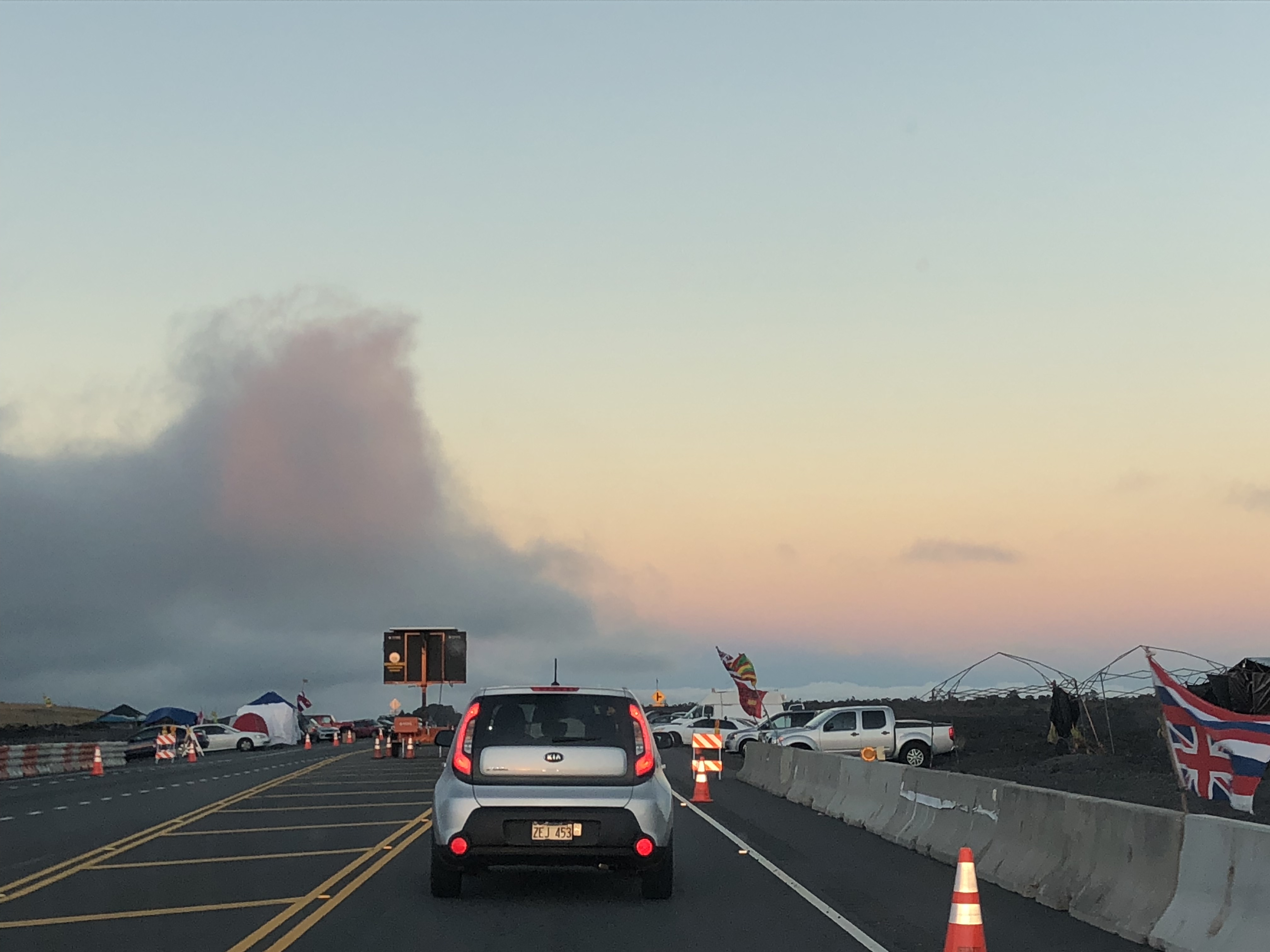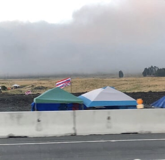 We come to where the traffic suddenly slows down and there’s rows of tents at an intersection. My GPS says we are by the Mauna Kea volcano. I had heard that there were protesters blocking the entrance road to the volcano, but there were lots of cars and tents and lots of law enforcement present. The protesters are there because the volcano is sacred to them, and they oppose the building of new telescope and scientific equipment there. The observatories are closed: so much for going up to stargaze. But I respect and understand the Hawaiian point of view also; being here for a week has opened my eyes to their history, legends, and culture.