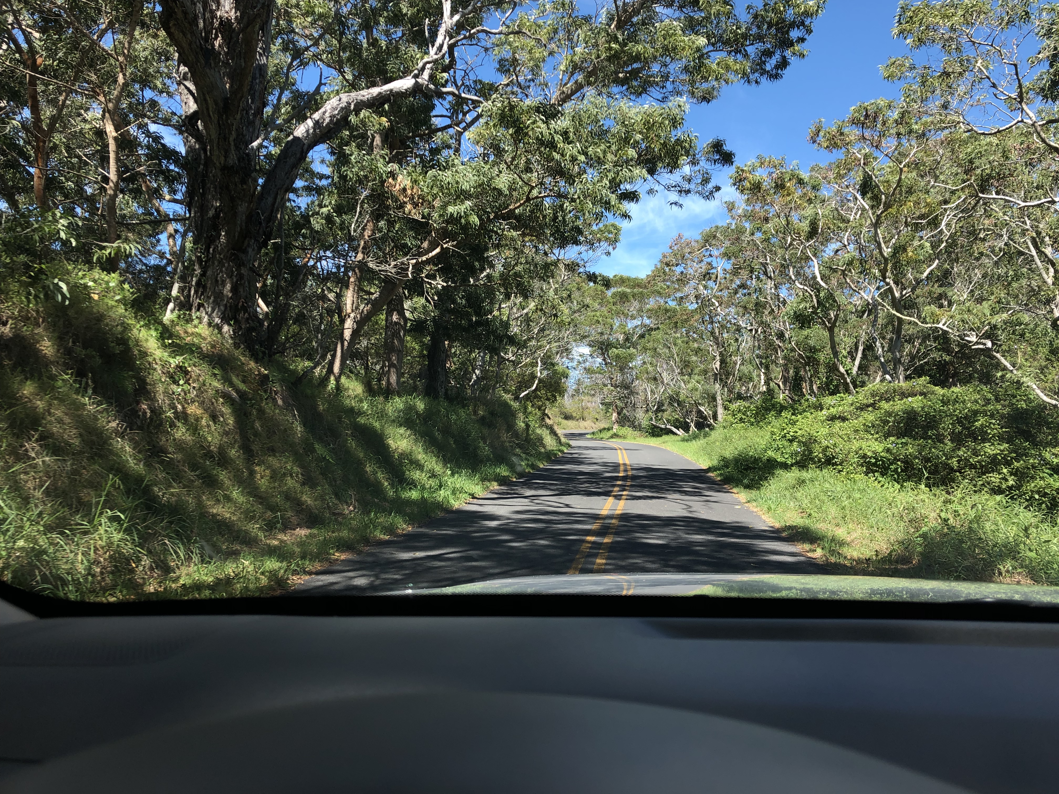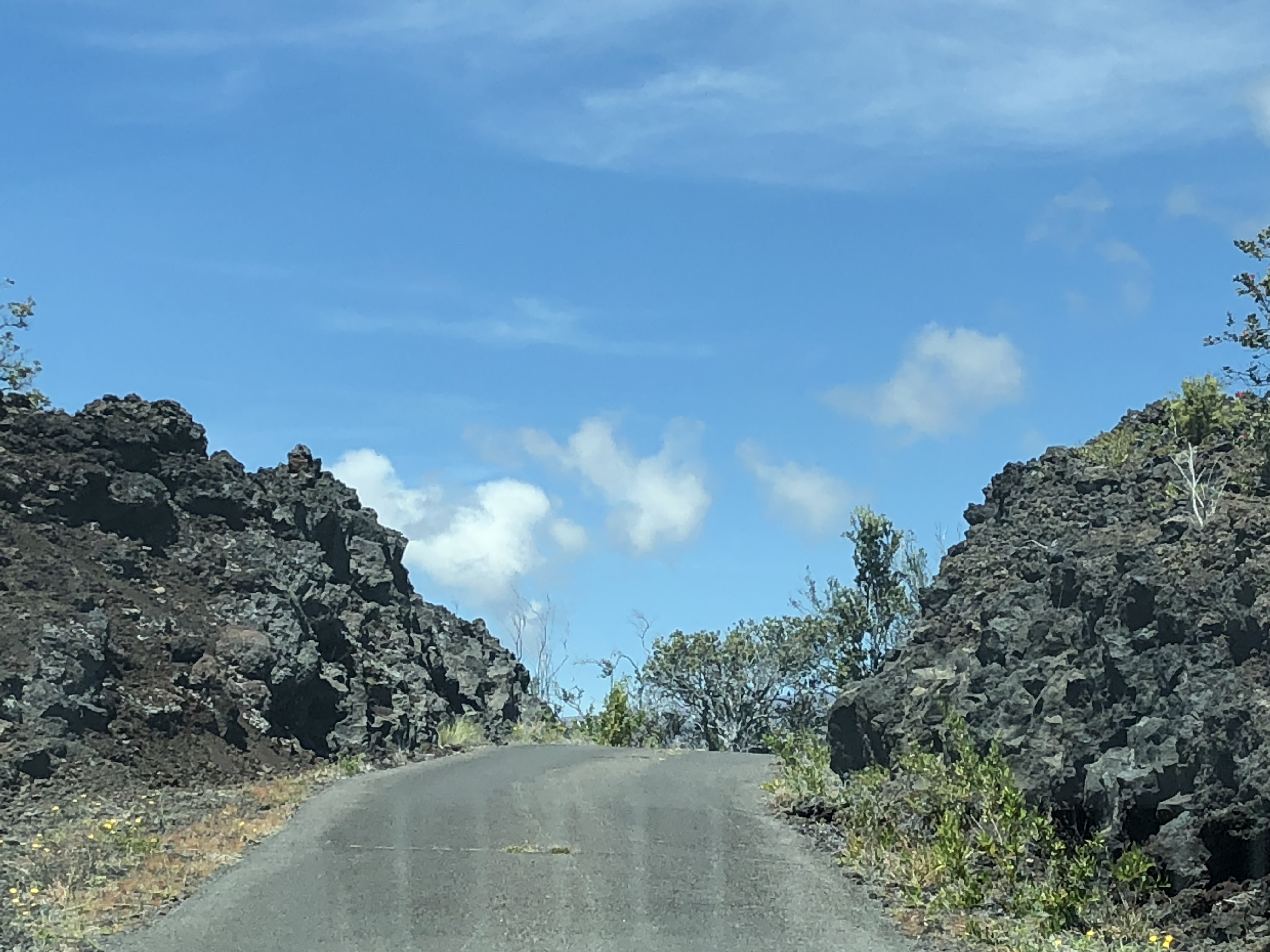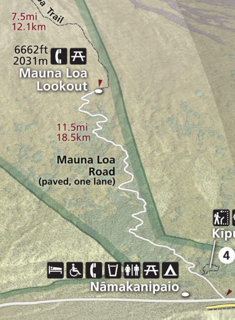 First task of the day in Volcanoes is tackling the viewpoint up in Mauna Loa, the volcano. The trail can be driven, but at one point it goes from a two lane road to a one way, and it’s up, up, up on the tight winding road.