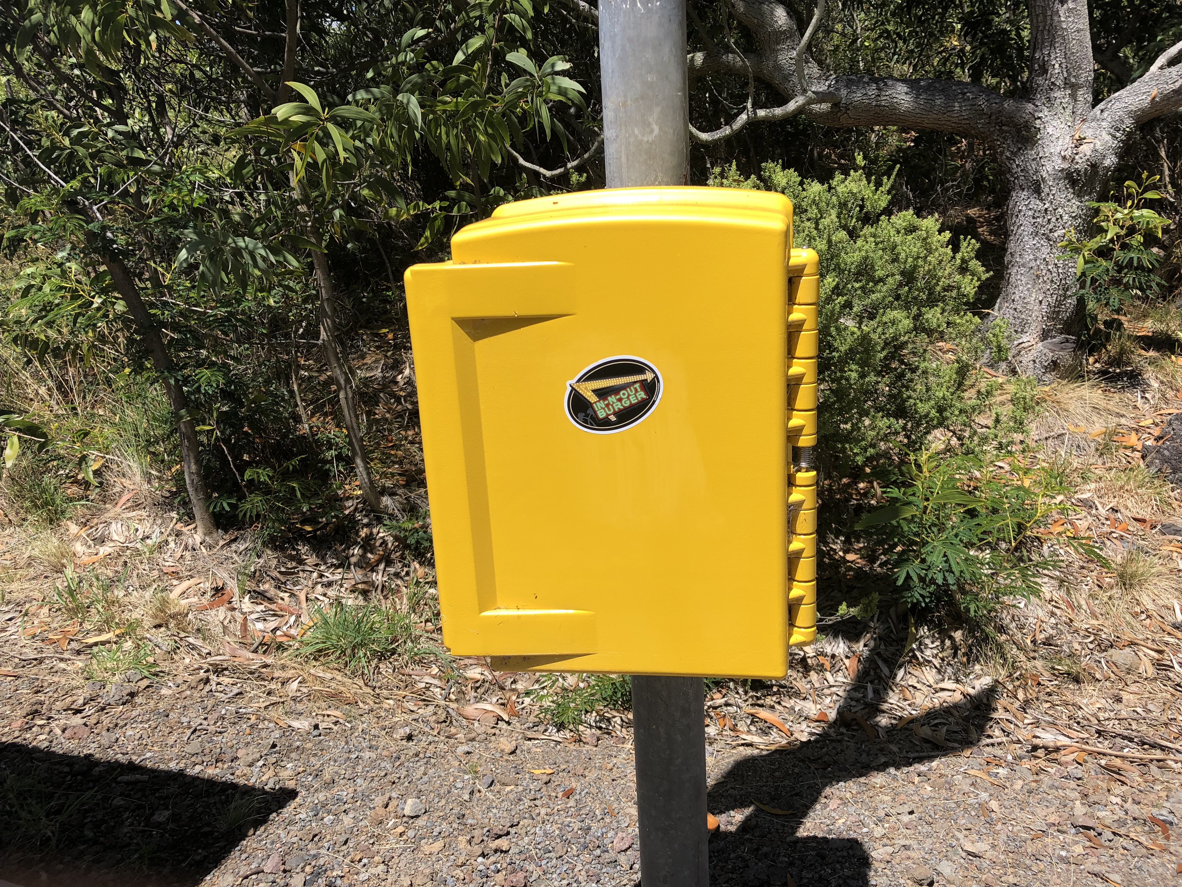 There was this sticker for in-and-out burger on this box up here, which was weird and really out of place: