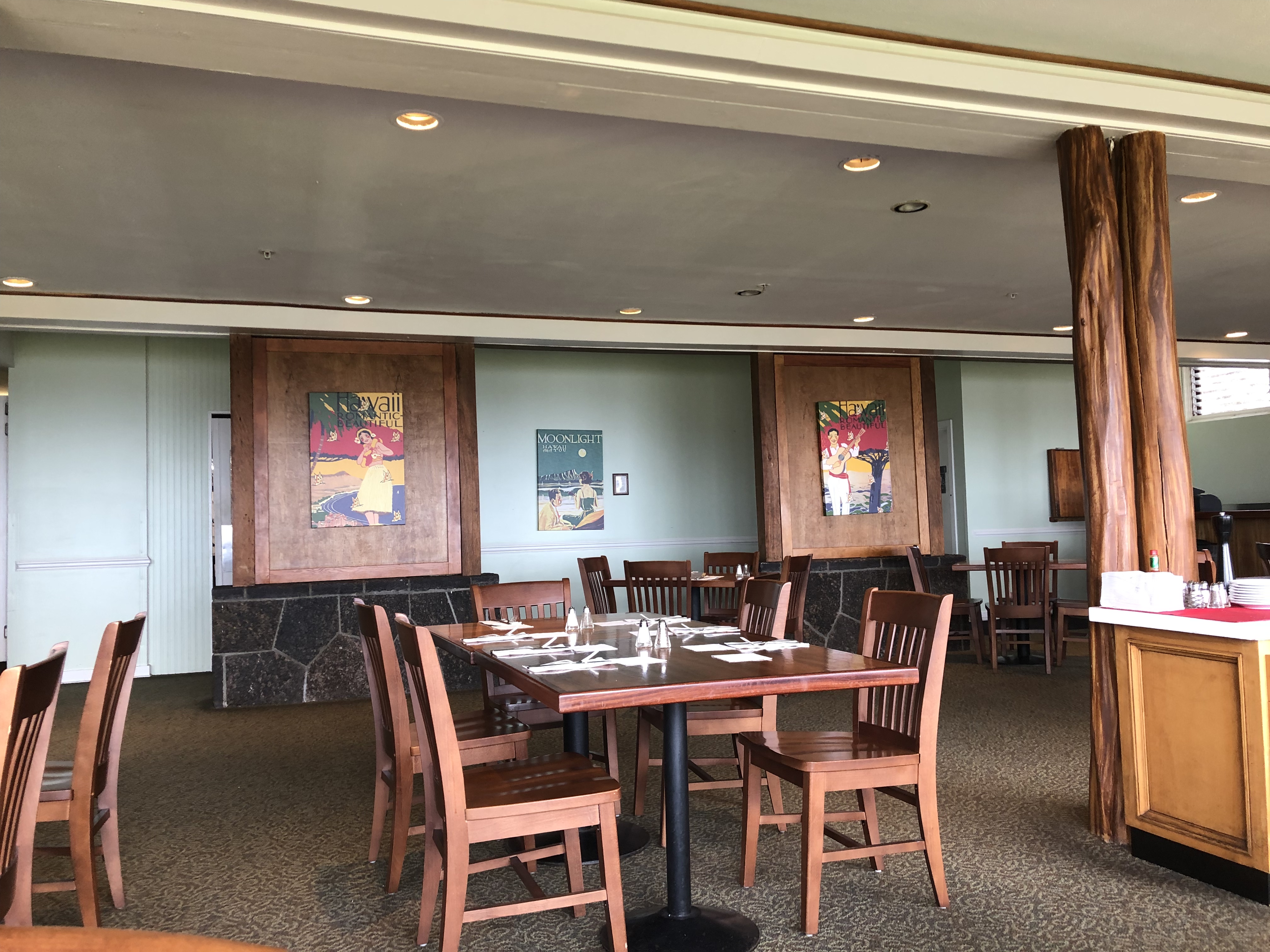 Back to the bottom and back to Volcano House for a meal. We sat on the other side of the seating with a different view of the caldera. We got a burger this time, and admired these beautiful posters that were in the seating area:
