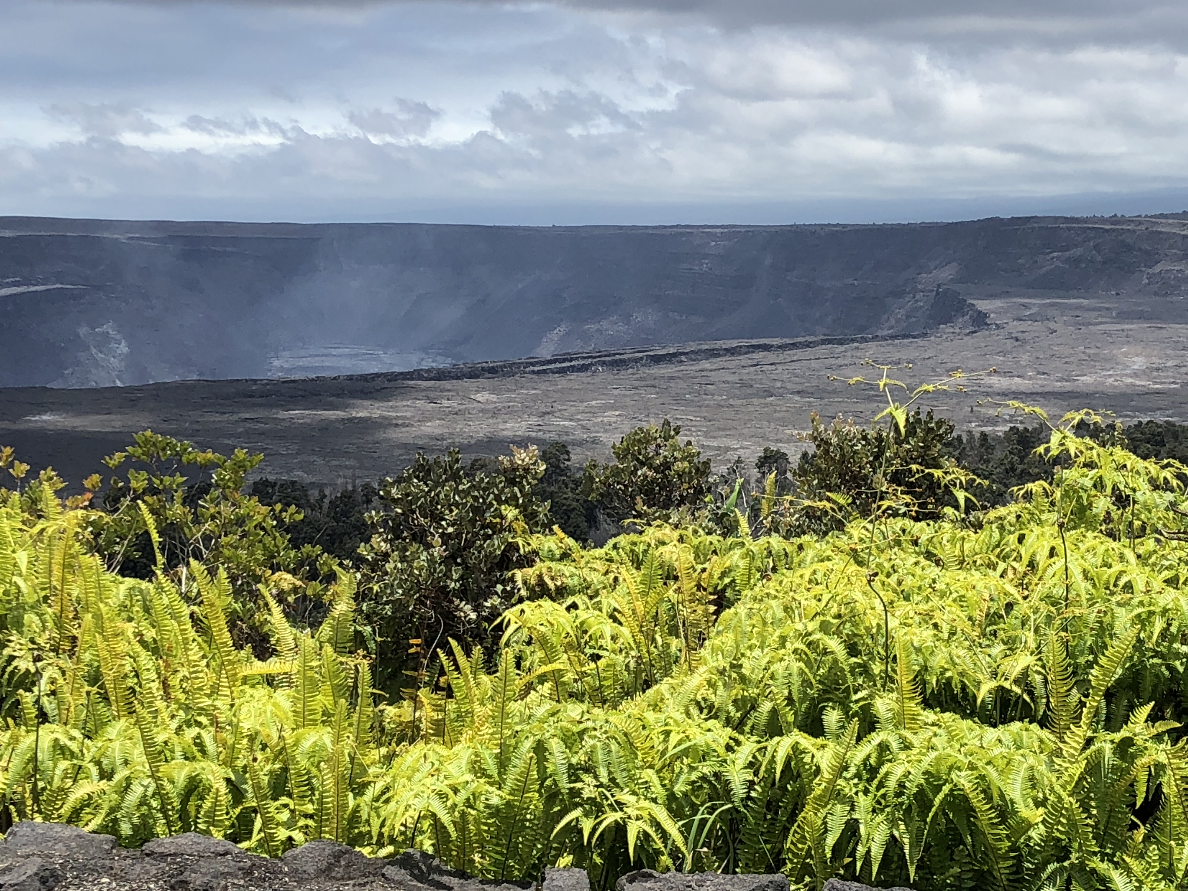 Time to drive back up the Chain of Craters road again. We got wonderful views like these and finally saw the state bird, the nēnē beside the road. You’re not allowed to feed them because they’ll associate cars and people with food, and get run over. They’re endangered! (Sorry, no pic of them, didn’t want to hit them)!