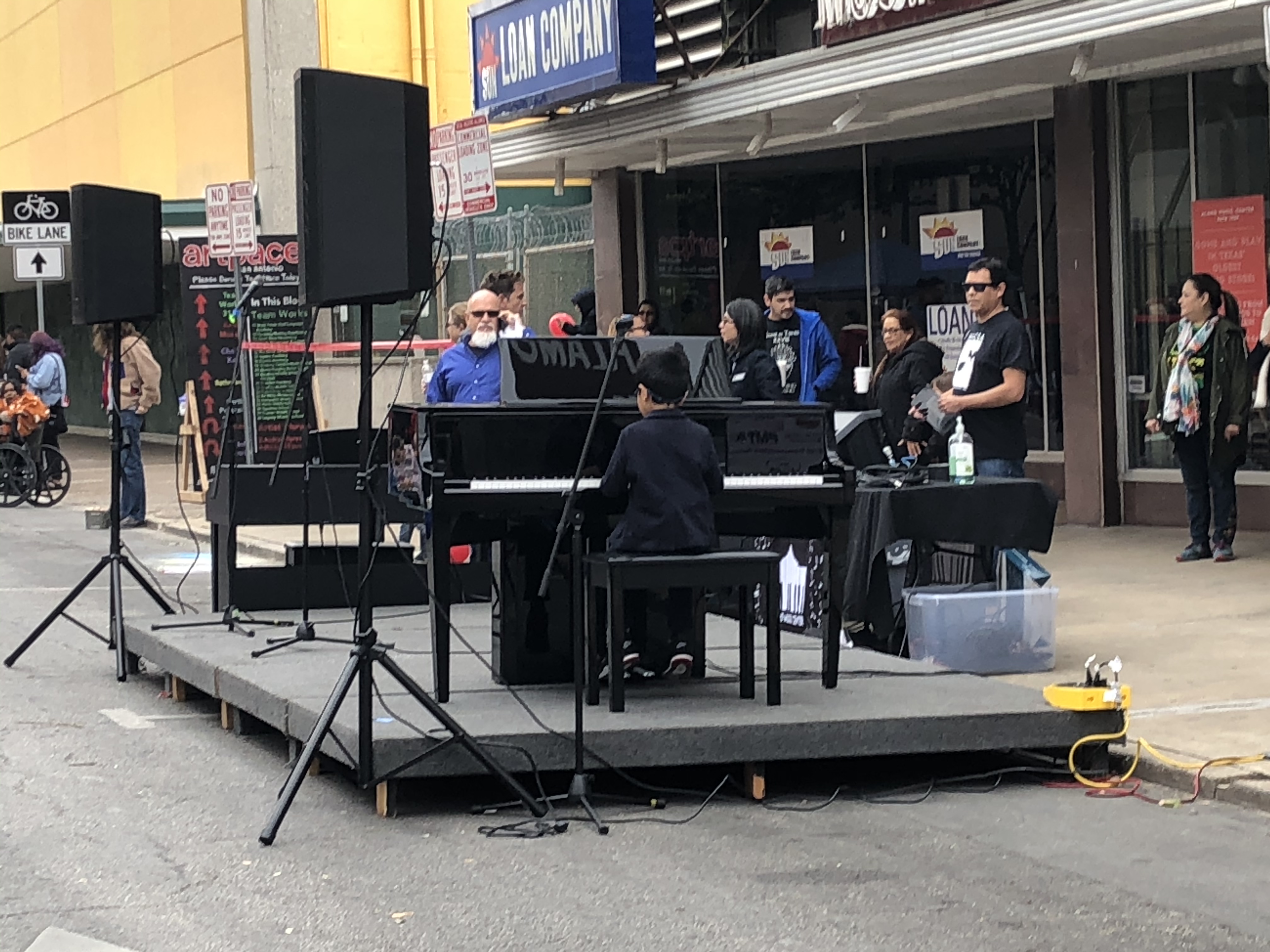While walking towards the center, we saw a full size piano set up in front of the Alamo Music Store and saw children playing that put everyone to shame.