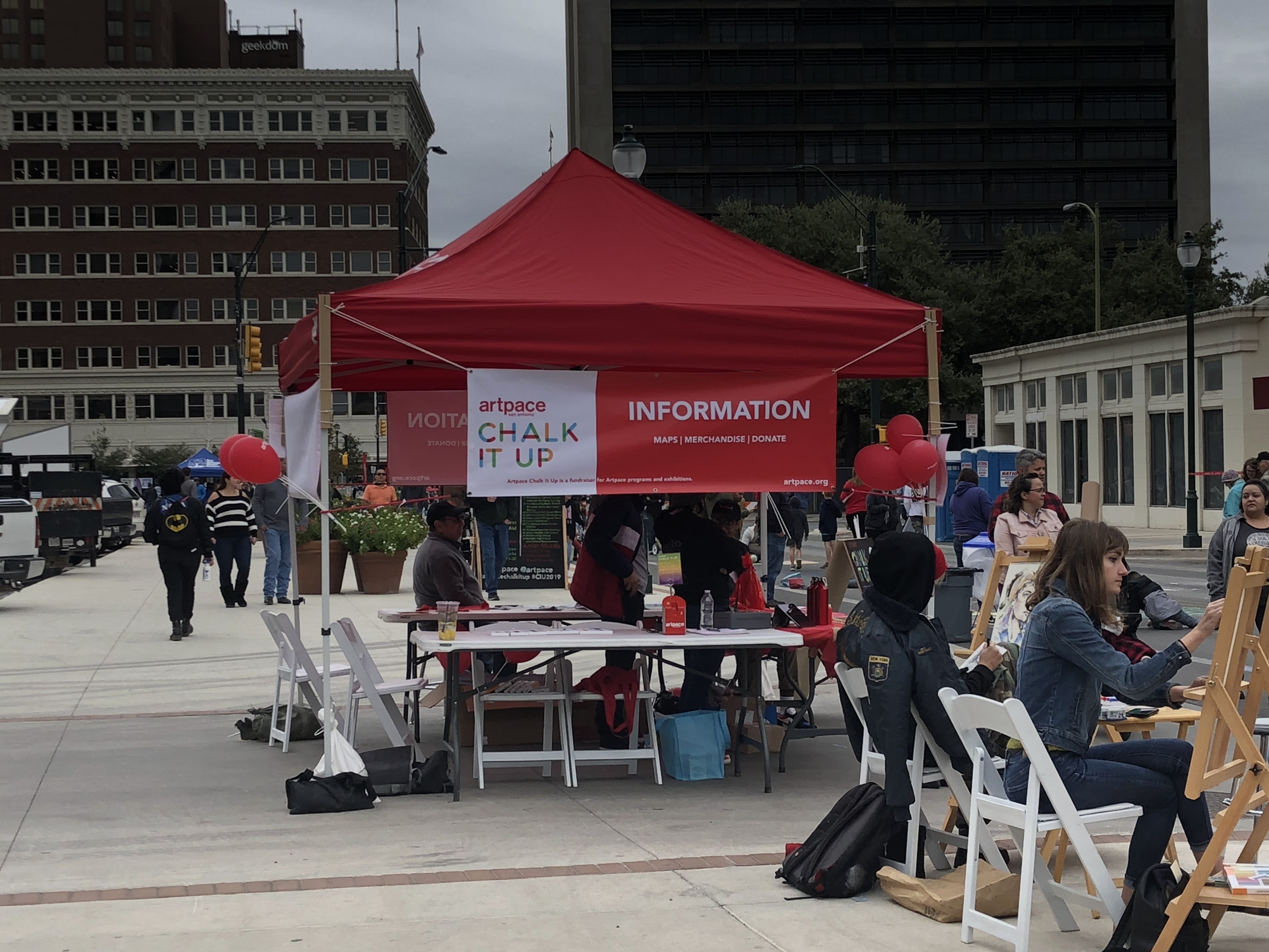 The first stop to make when coming here is the Artpace tent where you can get a map of what is offered in the festival along with official merch and free chalk to use.