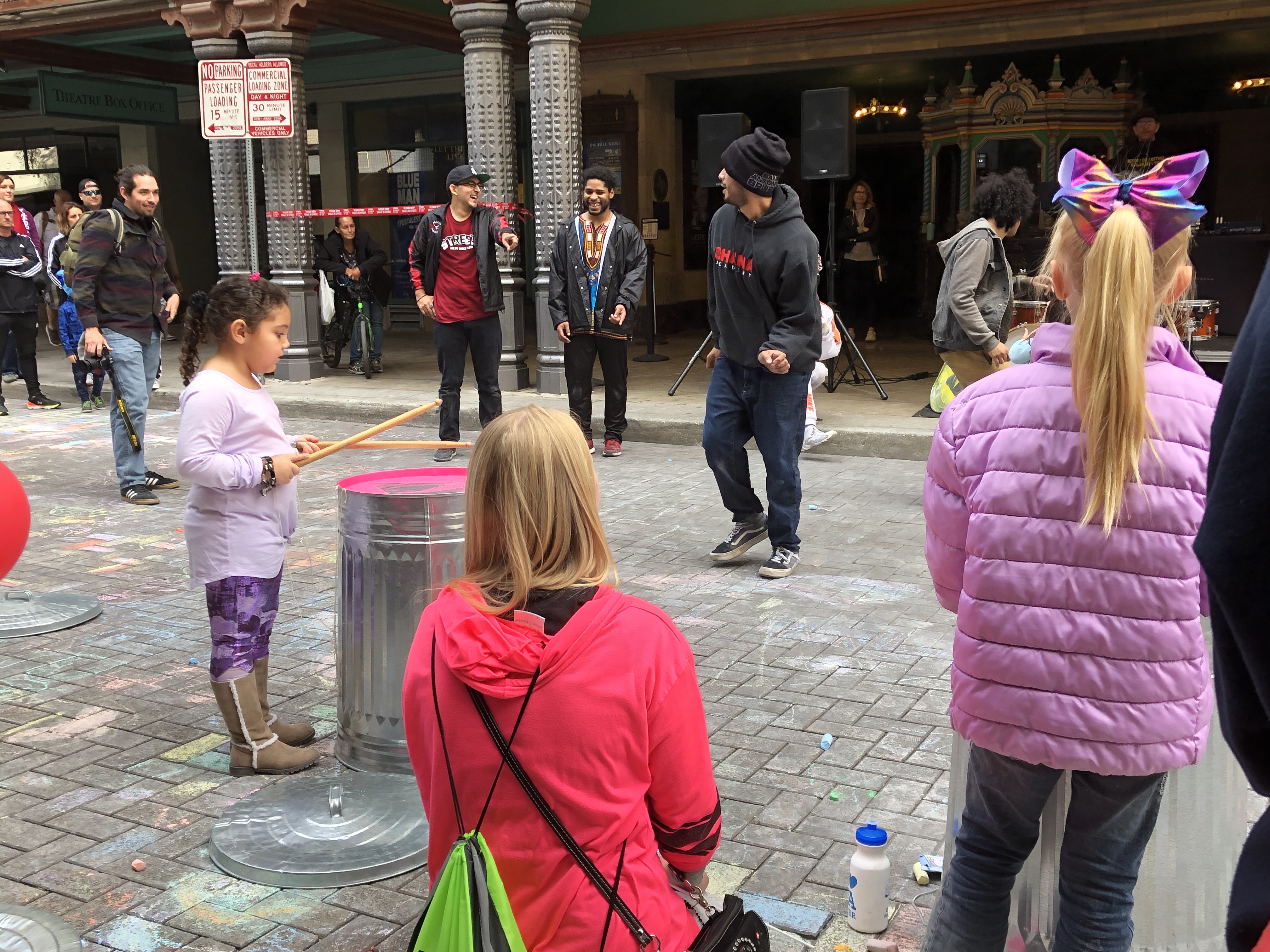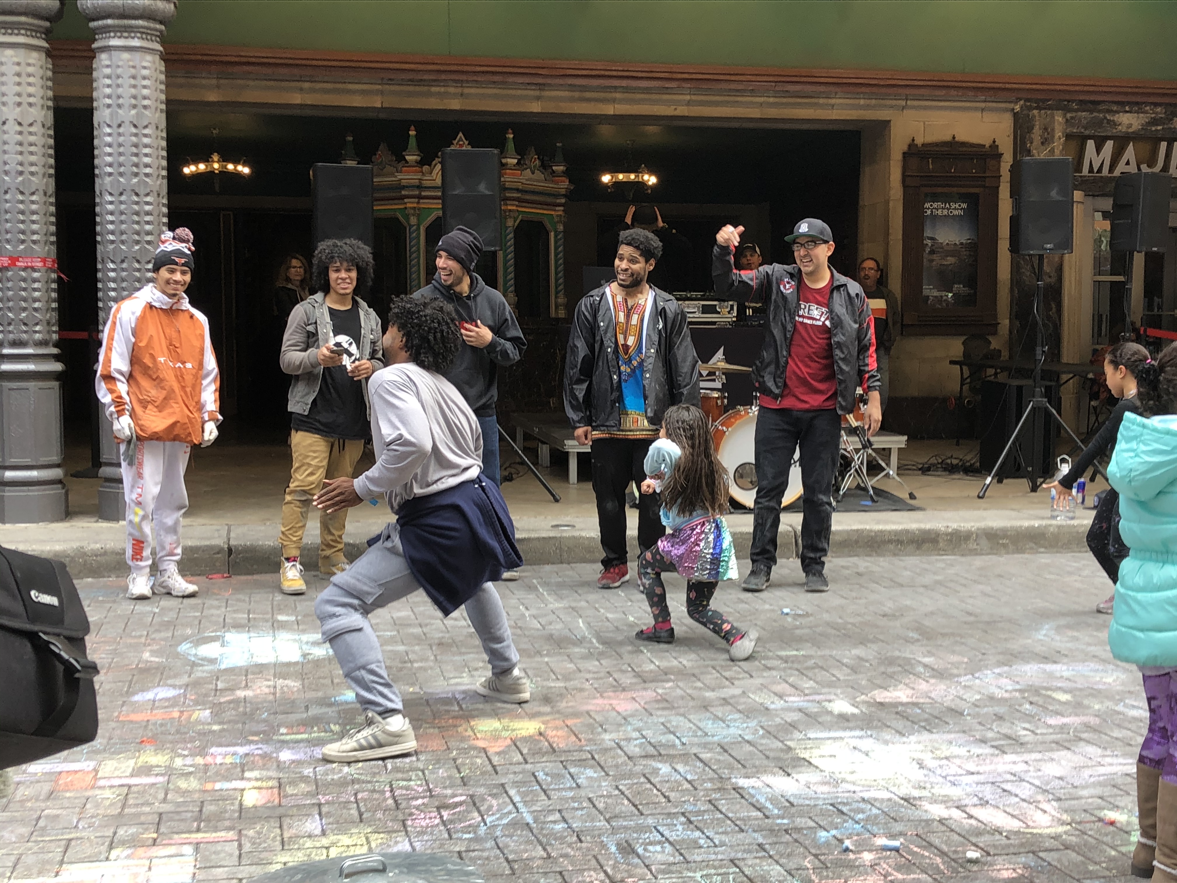 In front of the Majestic Theater was a group of guys playing freestyle music with a DJ and inviting anyone who wanted to come up and dance to not be shy and just do it! There were also drums made of trash cans that kids were just banging away on and the music was great if you’re a 90’s music lover (hello Boyz II Men and other old school hip hop)!