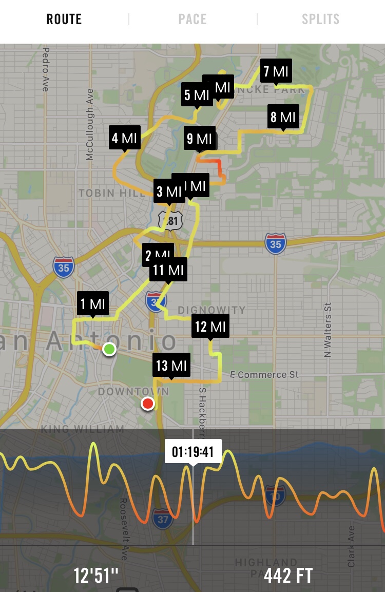 I had been pretty consistent in committing to running several times a week this past year. I would run after classes at UTSA at the Rec Center (they have an indoor track which is easier on the knees). I’d run in my neighborhood, I dragged people from work to go with me; I even joined a running group at a brewery downtown (though I skipped the discount beer afterwards). Three weeks before the the half marathon, I injured my left knee and it was super painful to even walk. But it was too late to back out, plus, I didn’t want to not do it!
