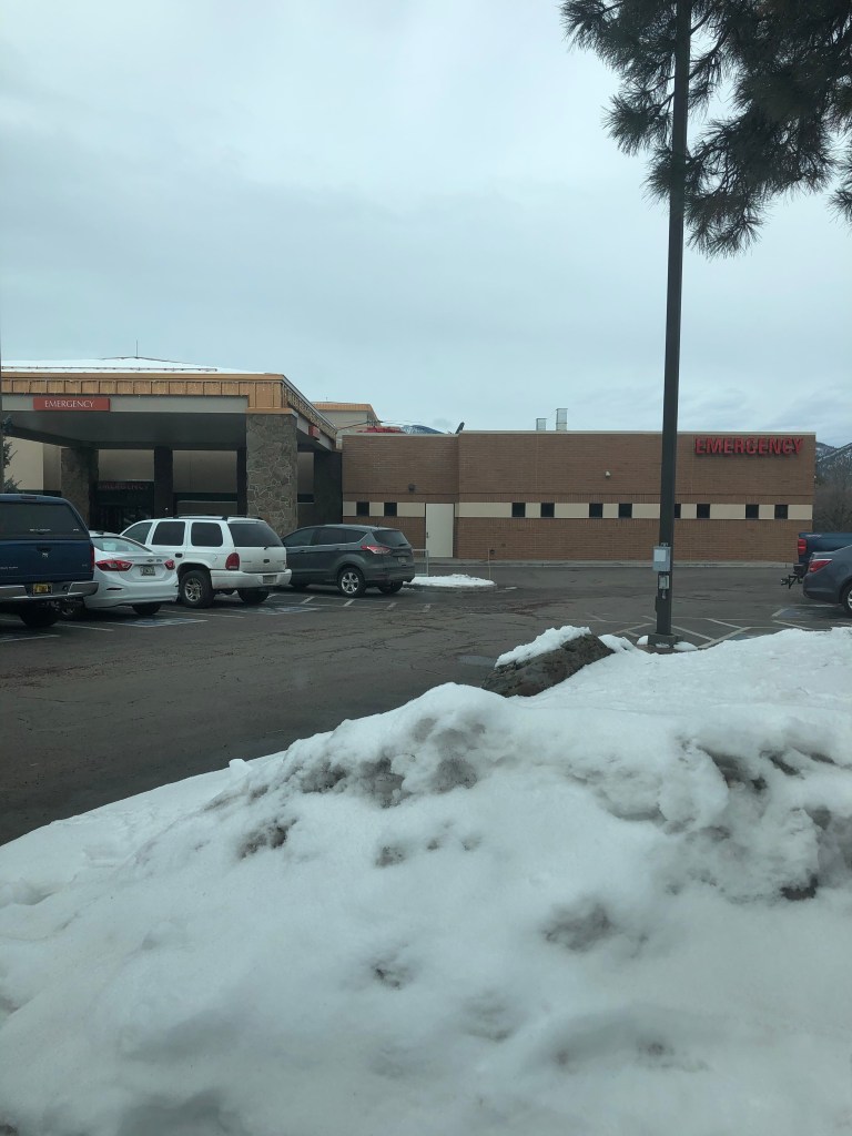 Unfortunately, it’s New Year’s Day and nothing but the Flagstaff ER is open. I tried the Uber and Lyft apps to get a ride because it’s like bitter cold outside and about 20 degrees. But there’s no available drivers and so I bundle up and we venture out to find the ER.