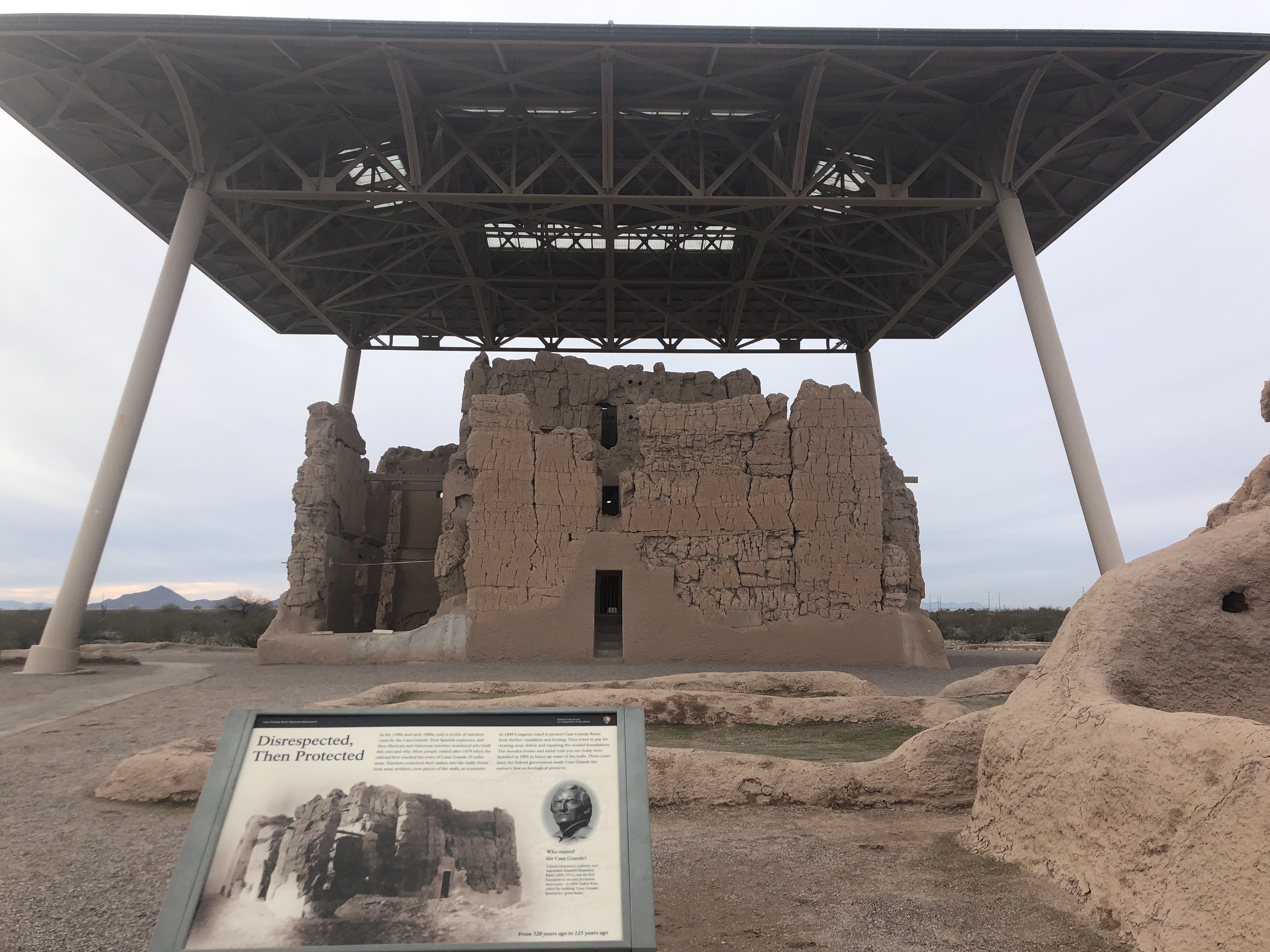 After we left Tucson, we started the drive to Flagstaff, but made a quick detour east to the town of Coolidge, home of the Casa Grande Ruins National Monument.